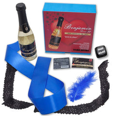 Además, contiene el JUEGO DE LAS ANILLAS que tirando las anillas y acertando dentro del benjamín el jugador QUE MÁS ACIERTE tendrá un privilegio en utilizar los ARTICULOS CUANDO QUIERA. También contiene CINTA DE BONDAGE, VENDA PARA LOS OJOS, PLUMA ESTIMULANTE y DADO blanco de gran calidad.