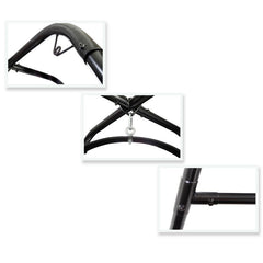 Convierte cualquier habitación en tu cuarto de juegos bondage con el increíble Fantasy Swing Stand. No se preocupe por la perforación de agujeros en el techo nunca mas. Este soporte aguanta mas de 400 lbs. Posee una gran estabilidad y te permitirá libertad de movimientos, dejándote explorar nuevas posiciones que nunca hubieses creído posibles. Se monta rápida y fácilmente, en menos de diez minutos y no necesita herramientas adicionales . Una vez montado puedes usarlo con toda su variedad de Fetish Fantasy Bondage restraints como esposas y cuerdas para crear nuevos escenarios bondage. Las posibilidades son infinitas. Esta estructura posee ayuda para intentar nuevas posturas en el columpio. Ambos pueden usar las barras y barras transversales para ayudar a alzarse y mantener el equilibrio. Sin el columpio conectado a la estructura, esta puede servir para inmovilizar a tu pareja.