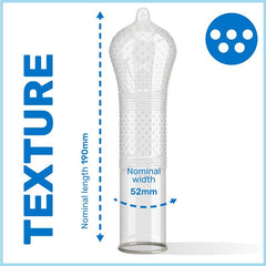Los condones Pasante Ribs & Dots Intensity son condones cónicos, texturizado con nervaduras pronunciadas y puntos. De color natural.